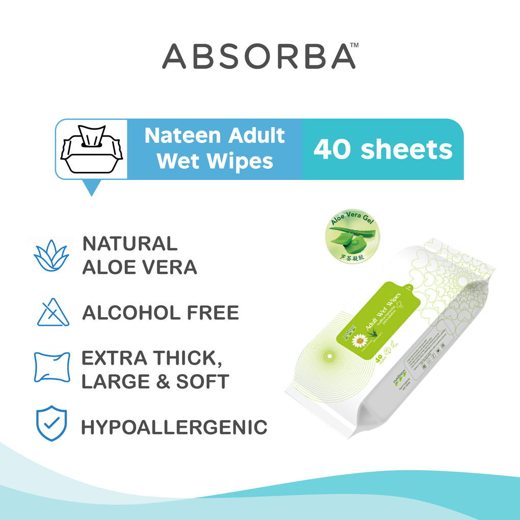 Absorba Nateen WET WIPES are extra-large non-woven, disposable hypoallergenic wipes, made with aloe vera for sensitive skin.