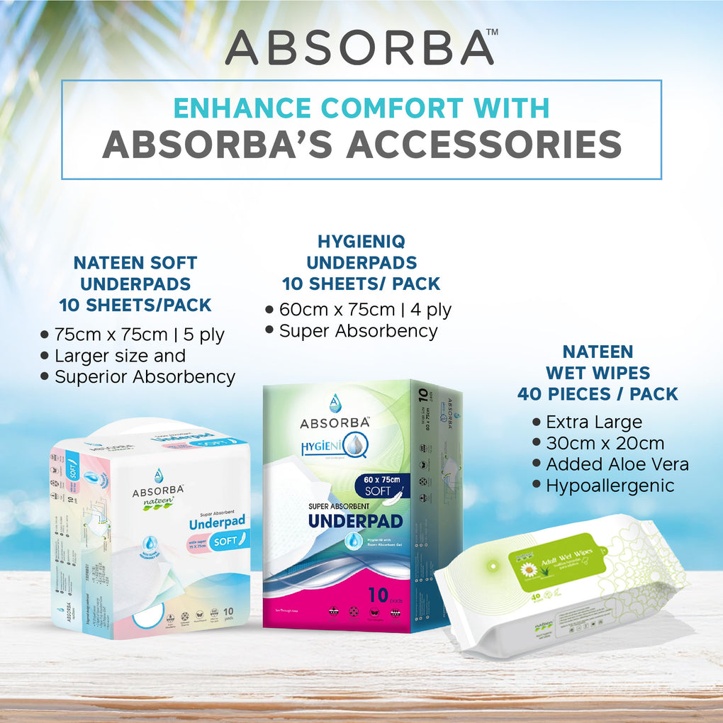 ABSORBA Nateen Soft Adult Diapers are designed for light to moderate incontinence, providing soft, breathable, and skin-friendly care. Perfect for active or semi-mobile adults, these diapers ensure discretion, comfort, and confidence during daily activities.