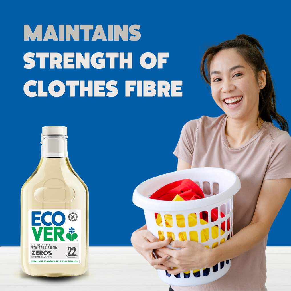 Ecover Delicate Laundry Liquid takes gentle care of fine fabrics, silks and woolens, with a big thumbs up from Woolmark.
