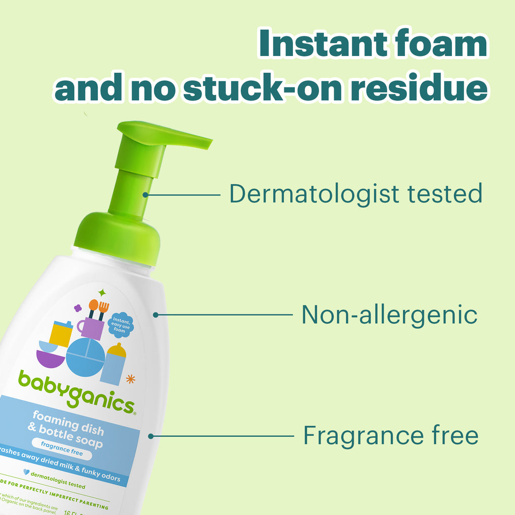 Instant foam and no stuck-on residue. Easily removes dried milk, food, grease, gunk, & icky-sticky, caked on messes and more. Works great on breast pump accessories too. Pump directly onto bottle, cup or dish or use a damp sponge. Wash and rinse as normal.