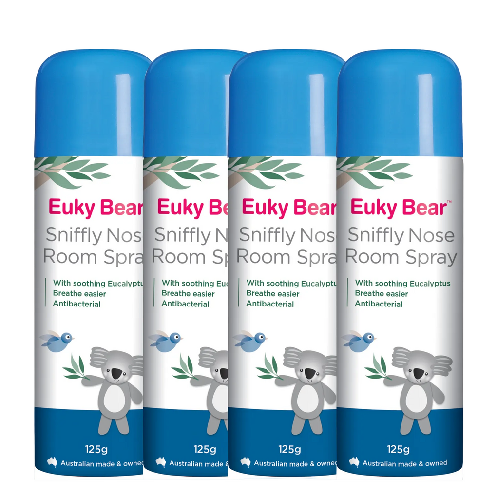 Euky Bear Sniffly Nose Room Spray helps comfort and soothe before bedtime (or anytime!) providing instant aromatherapy with antibacterial oils Eucalyptus, Menthol, Rosemary and Oil of Wintergreen.