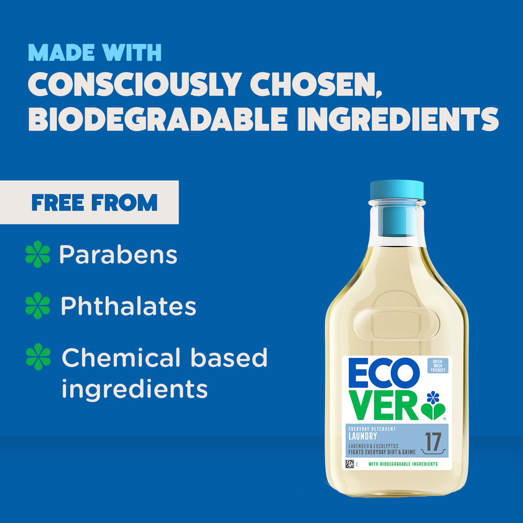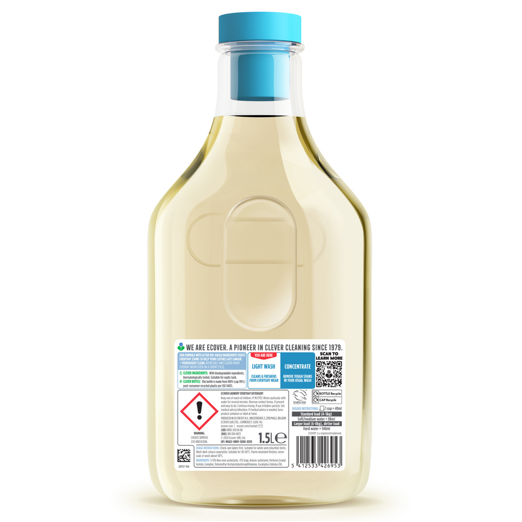 Suitable for white and colourfast items. Use Ecover Delicate for wool and silk. Don’t let product dry-out on your laundry. Always follow label and machine instructions.