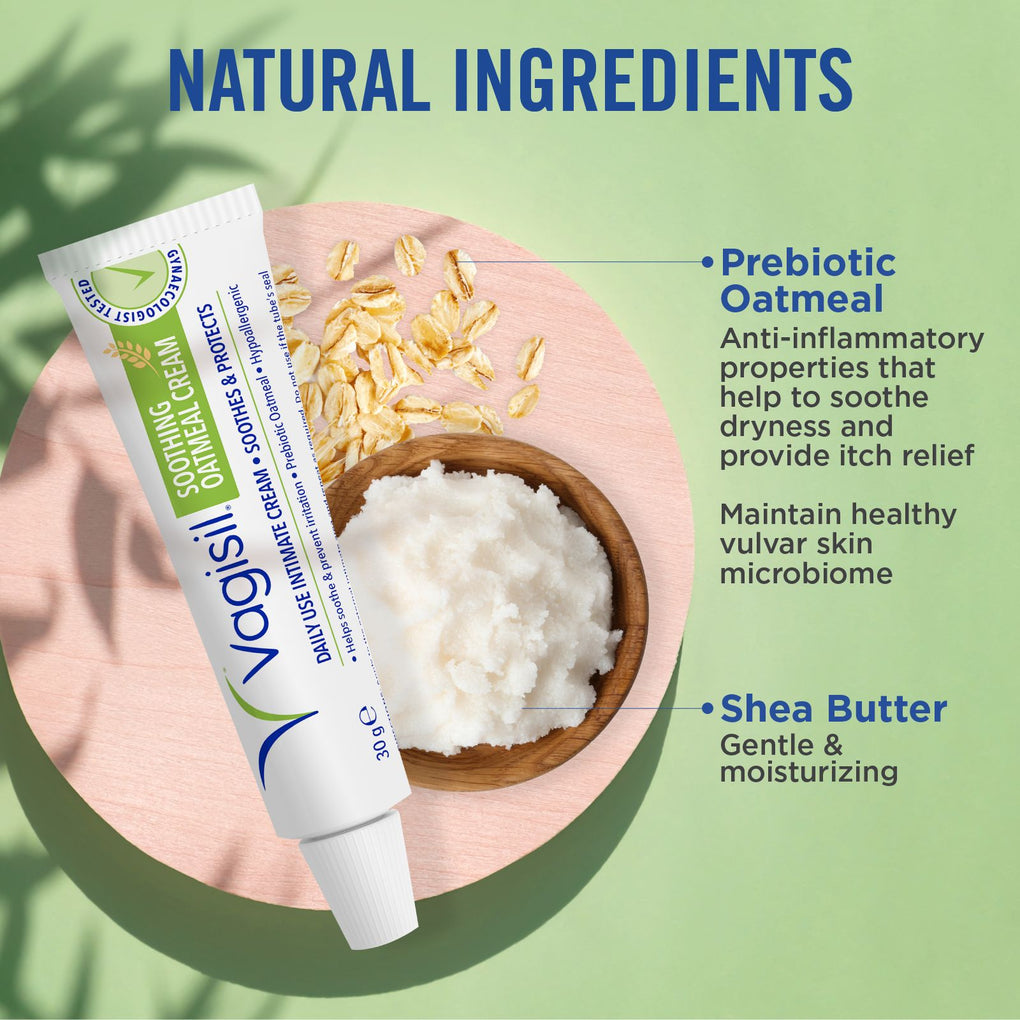 Vagisil Soothing Oatmeal Crème provides fast soothing relief for sensitive skin and helps promote skin healing - naturally. It also works to relief itch associated with dry skin and acts as a natural emollient increasing the skin's hydration and preserving it's natural pH level.