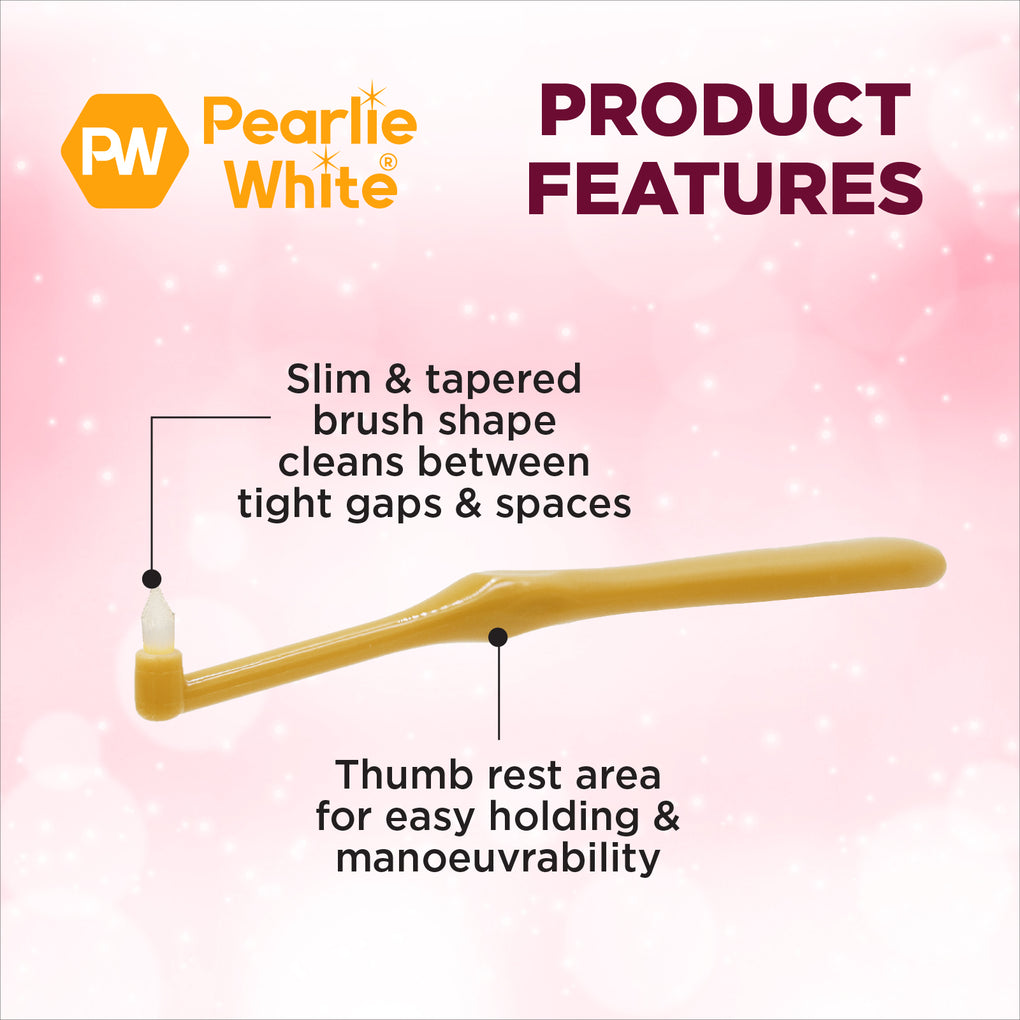 Our InterSpace brush is specially designed for precision cleaning around crowns, braces and other orthodontic appliances. Its slim and tapered brush allows you to clean in between tight gaps and spaces, effectively removing tough plaque and food particles caught in between your teeth. The handle has a thumb rest area to help you manoeuvre the brush easily and reach those hard-to reach areas.