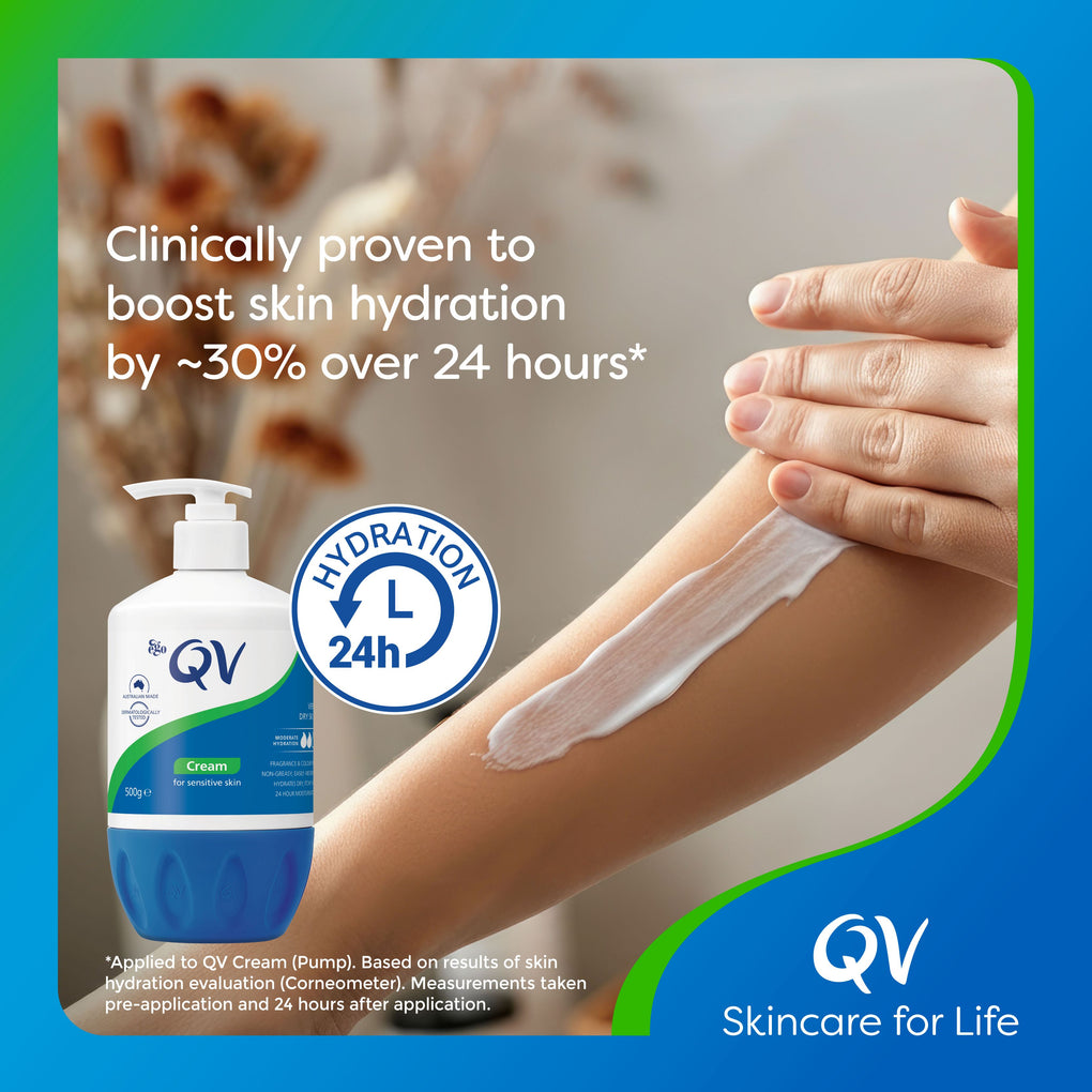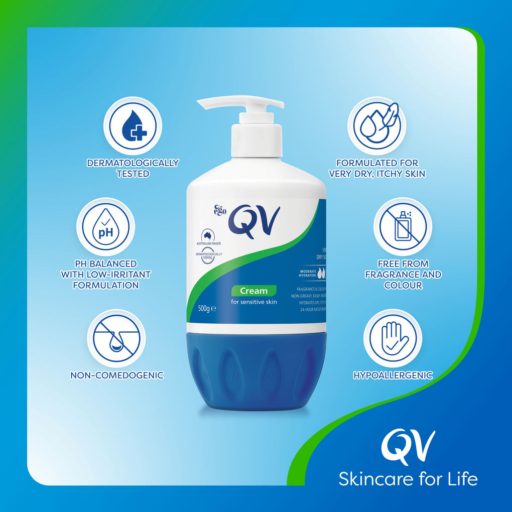 Highly concentrated moisturising cream for dry skin. It contains squalane, a natural component found in the skin’s oil. This rich protective cream replenishes the skin and dry areas. Areas prone to dryness like the elbows, knees and hands will just love what QV Cream can do to help.