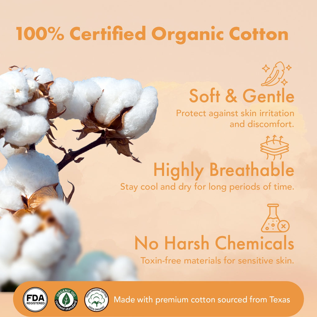 Our ultra-thin Organic Cotton Cover Panty Liners make sure you're feeling, looking, and smelling fresh throughout the day.