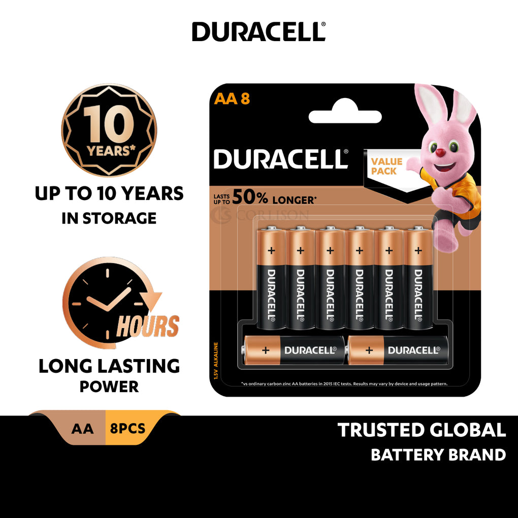 Duracell offers a wide range of batteries to be used in electronics that require reliable power. Duracell batteries are multi-purpose alkaline batteries ideal for reliably powering everyday devices that require a kick of additional power. Duracell alkaline batteries are available in size AA, AAA, C, D and 9V. Duralock technology keeps unused Duracell batteries fresh and powered up to 10 years in ambient storage. These batteries give you the freedom to enjoy the use of your appliances by giving you a product you can rely on. The Duracell batteries are best used when you are looking for reliable, long-lasting power in your every day devices such as motorized toys, flashlights, portable games consoles, remote controls, etc. In 1969, Duracell was part of the Apollo 11 mission and became the first battery on the moon. Country of Origin: China