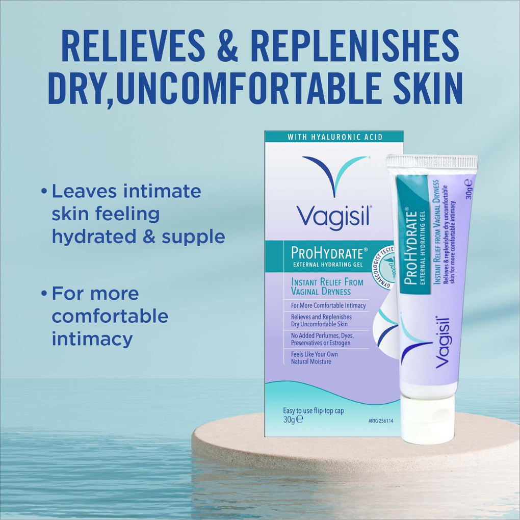 Vagisil® Prohydrate External Hydrating Gel instantly relieves vaginal dryness for more comfortable intimacy and restored confidence.
