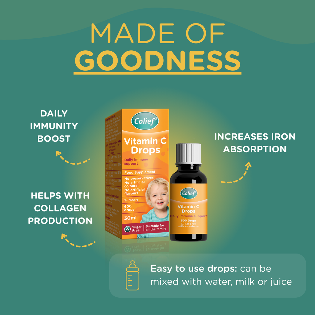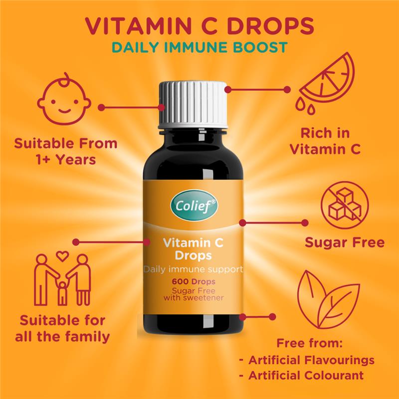Easy to use Colief Vitamin C Drops can be mixed with water, milk or juice, making it easy to add to your morning breakfast or drink