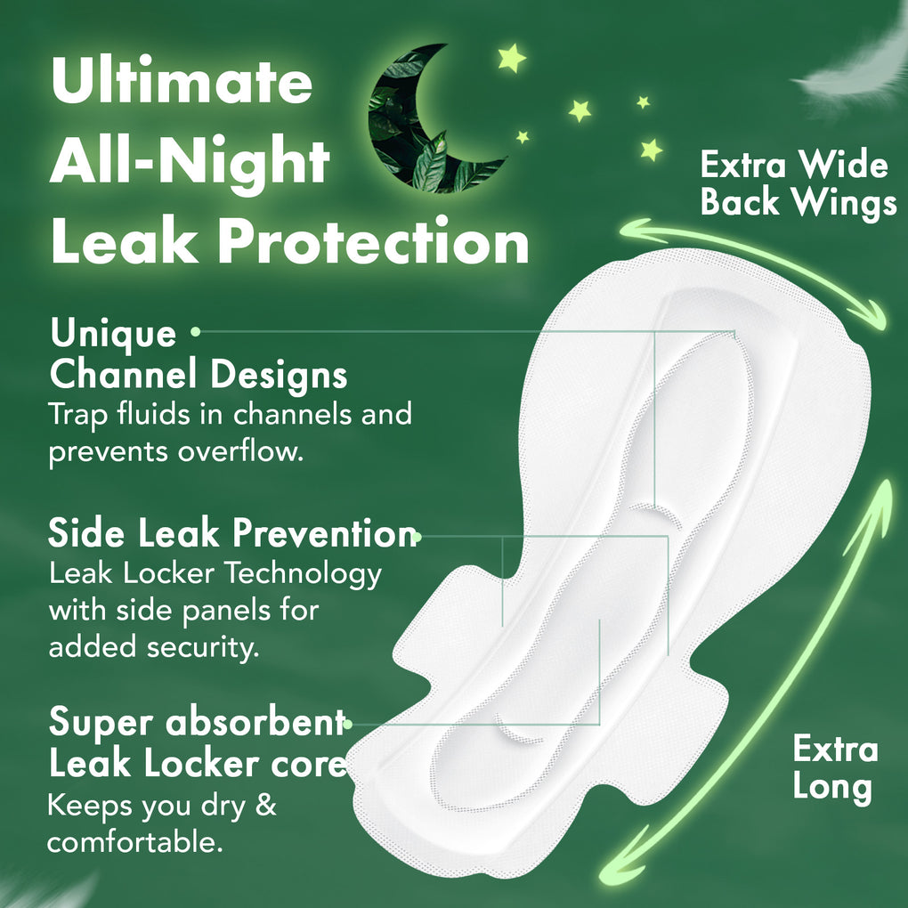 Extra-long length keeps you covered and double wing adhesives keep the pad in place all night no matter how much you toss and turn at night.