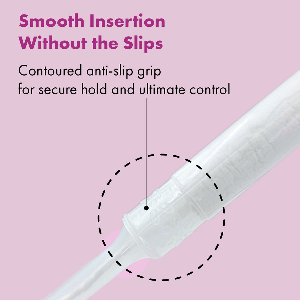 • Applicator features an ultra slim tip and smart grip technology for comfortable insertion