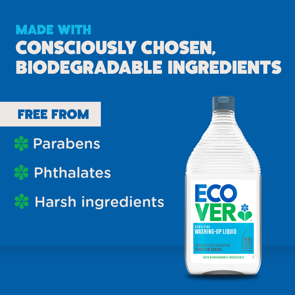 Ecover Washing-up Liquid unleashes the power of biodegradable plant-based ingredients, to leave your dishes squeaky clean.